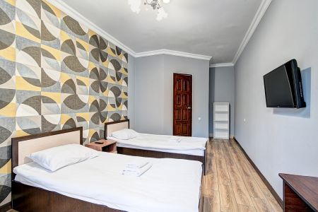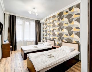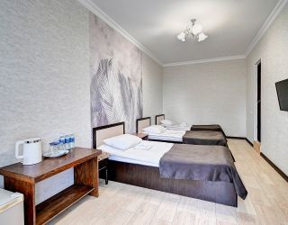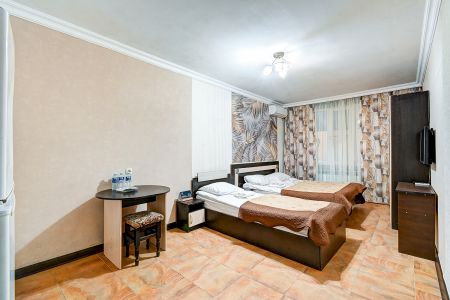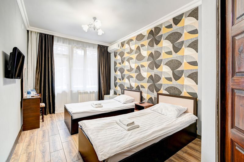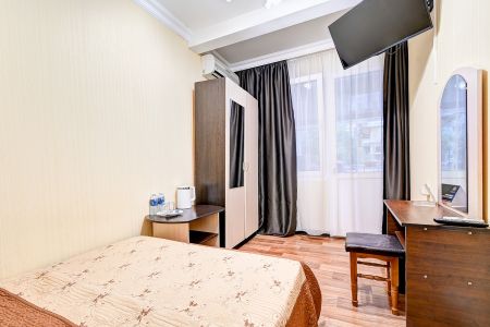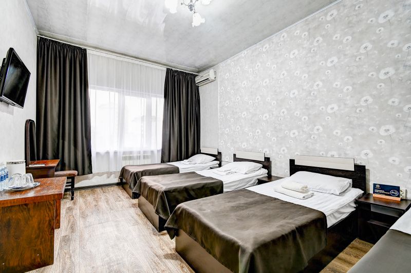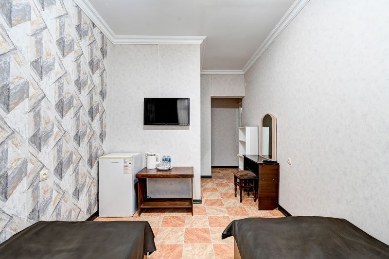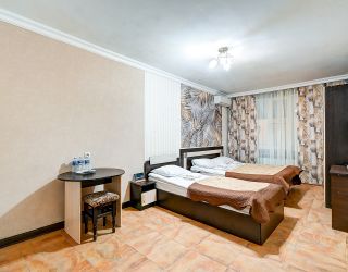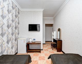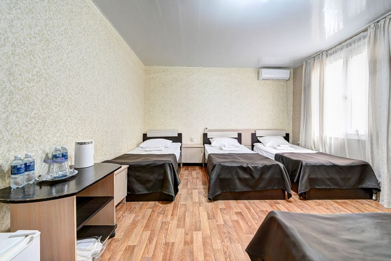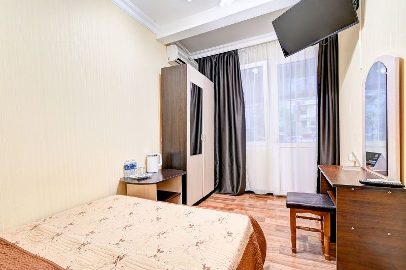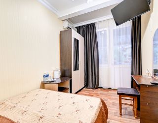 Трехэтажный корпус отеля занимает закрытую территорию с внутренним двориком. В распоряжении гостей номера разных категорий, есть как бюджетные варианты, так и просторные апартаменты с кухонным уголком и стиральной машиной. Во всех номерах установлена сплит-система, есть телевизор, электрочайник. В ванной комнате – душ и косметические принадлежности для отдыхающих.