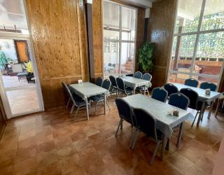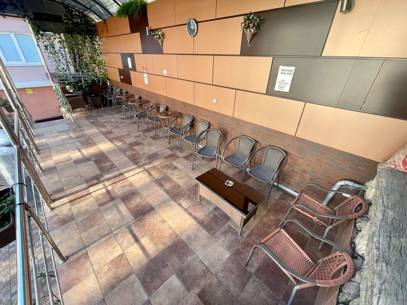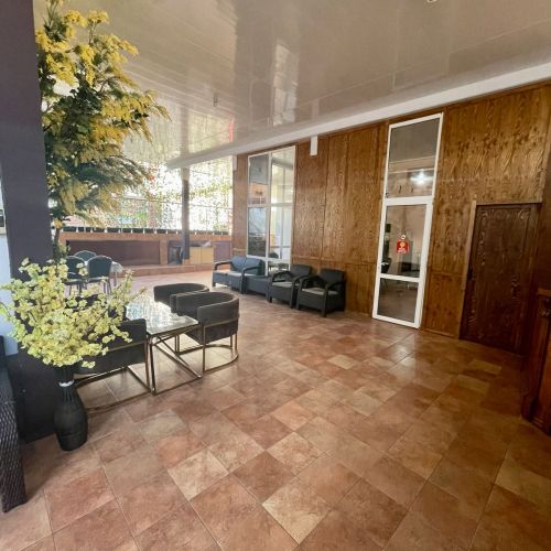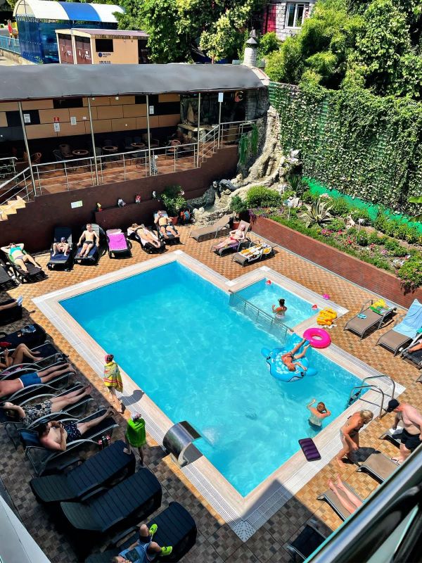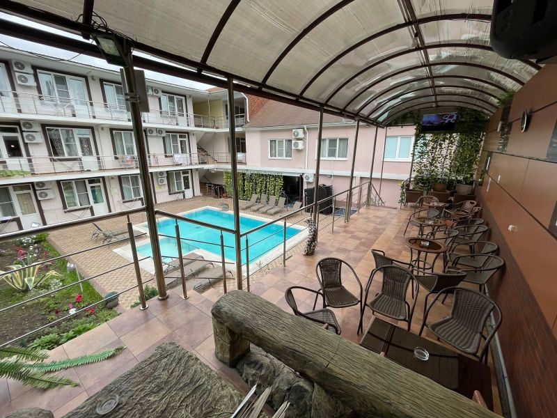 На территории открыта столовая, организована мангальная зона, где можно приготовить мясо на углях. К услугам гостей во дворике – открытый бассейн и зона с шезлонгами.