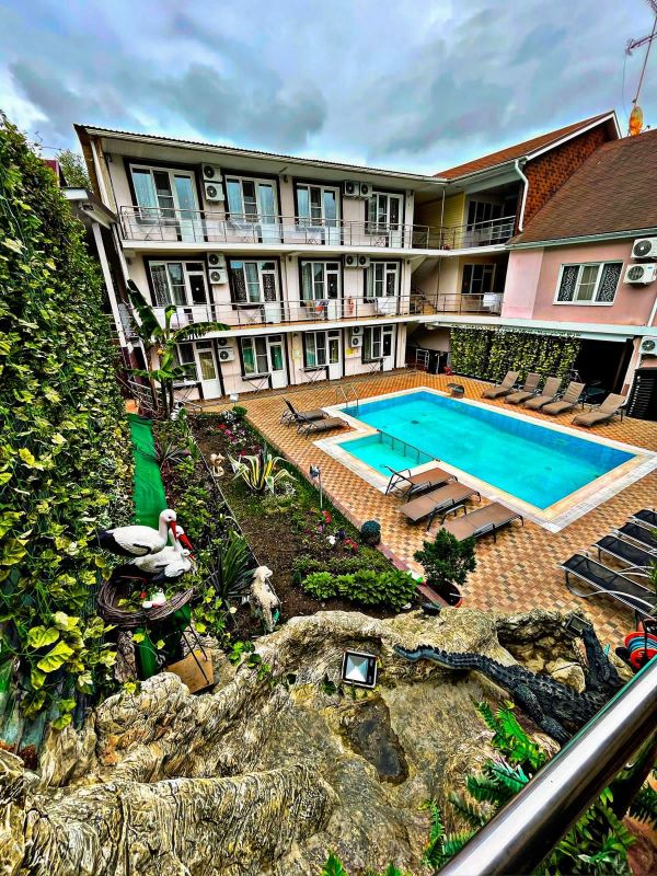 Мини-отель расположен в курортном Адлере вдали от оживленного центра. Рядом – магазины, супермаркеты, кафе, за 10–15 минут можно доехать до адлерского дельфинария, океанариума или до знаменитого Олимпийского парка и парка аттракционов. Дорога до высокогорных курортов Красной Поляны на авто займет чуть больше получаса, а всего в 4 километрах – международный аэропорт.