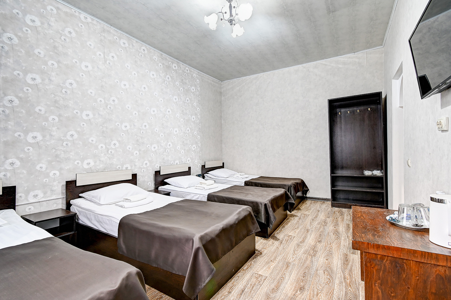Мебель (кровати односпальные, прикроватные тумбочки, стол, стулья, шкаф), Оборудование (мини-холодил... |